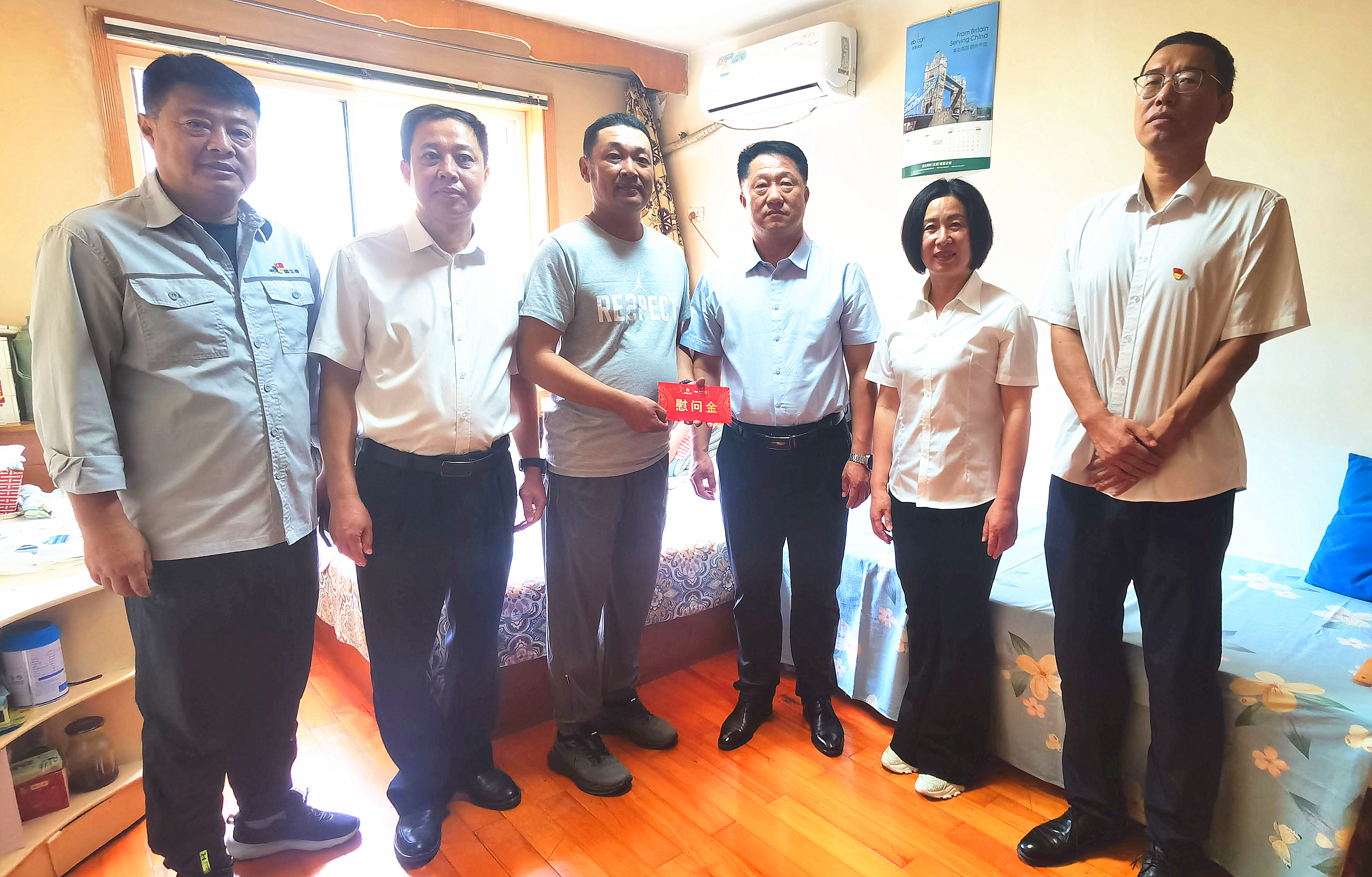 中國三冶黨群工作部、制品公司有關(guān)負(fù)責(zé)人陪同慰問。