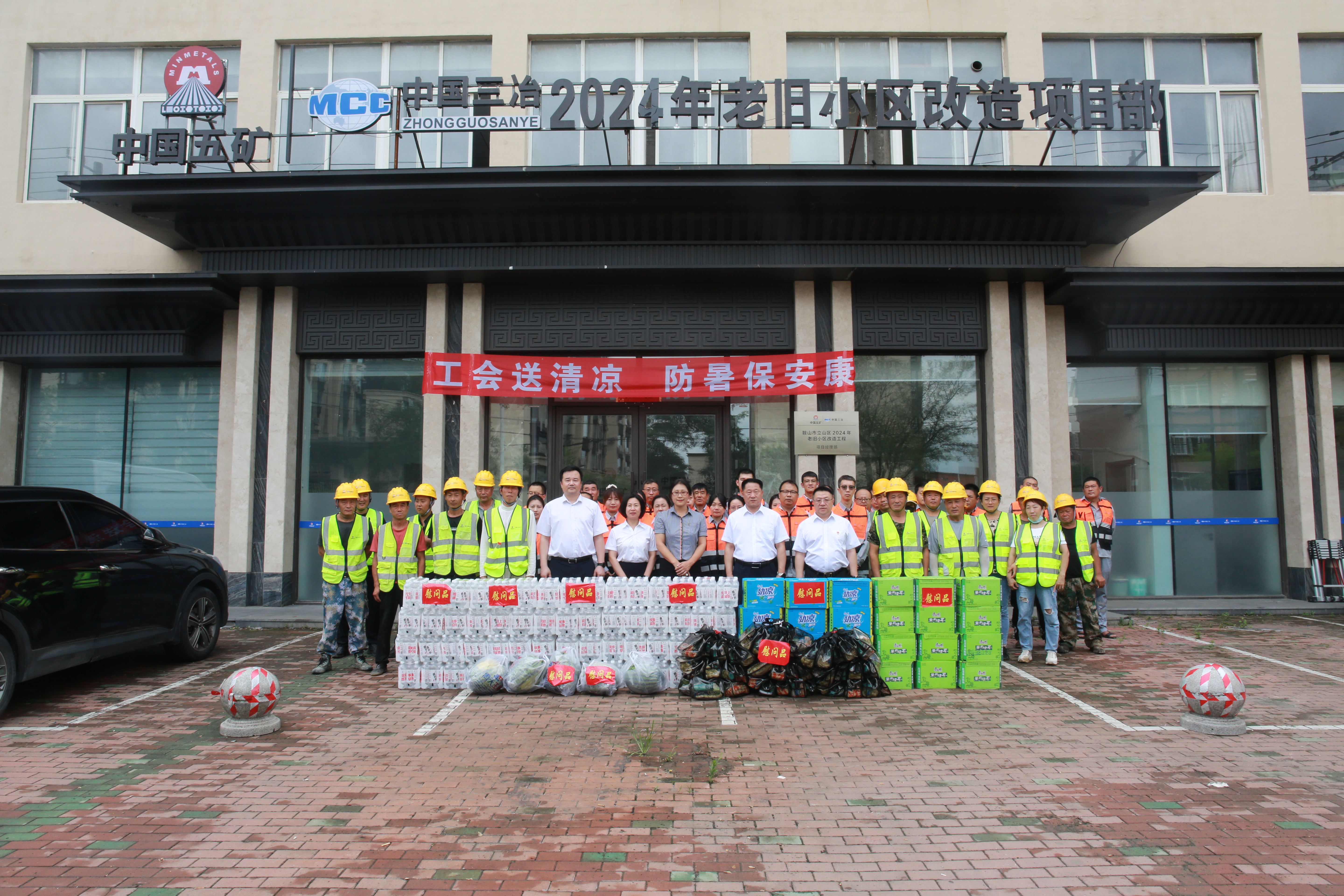 7月24日,鞍山市總工會黨組成員、副主席趙洪霞一行在中國三冶黨委副書記、工會主席馮永德陪同下到中國三冶鞍山市立山區(qū)老舊小區(qū)改造項目開展“工會送清涼、防暑保安康”慰問。